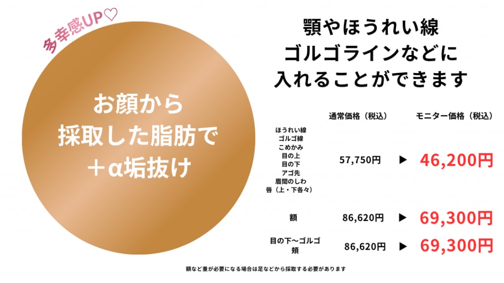 脂肪注入もモニター価格でご案内可能です↓