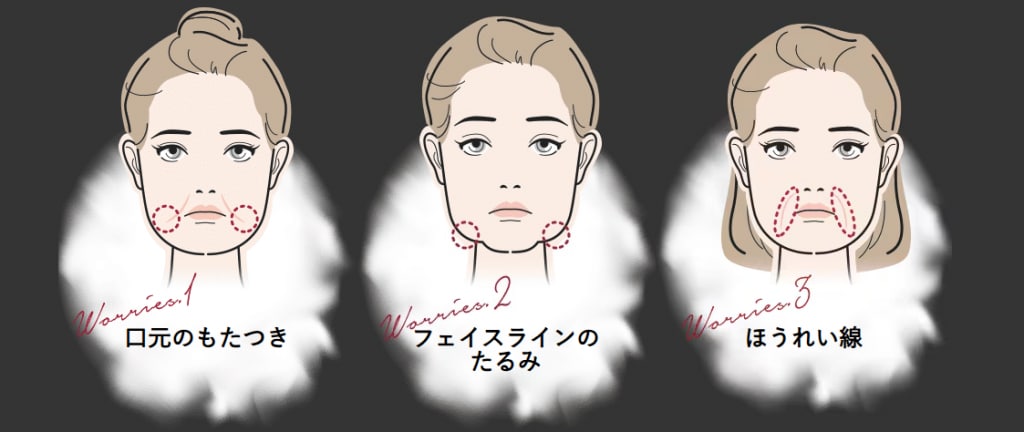 口横のもたつき(マリオネットライン・フェイスラインの緩み)は、30代以降から急に気になり始める方が多い部位です。