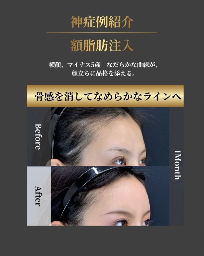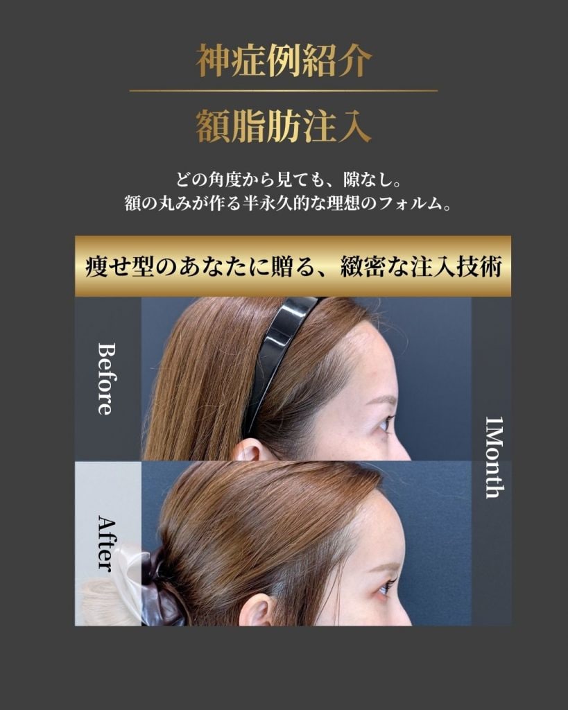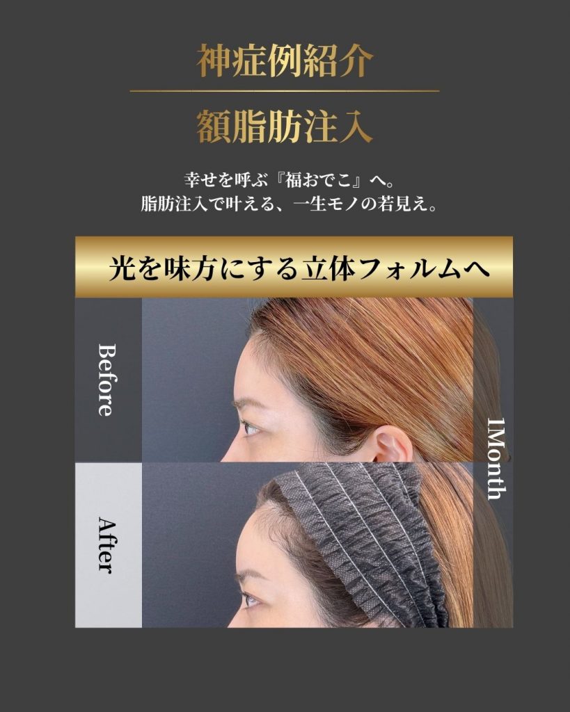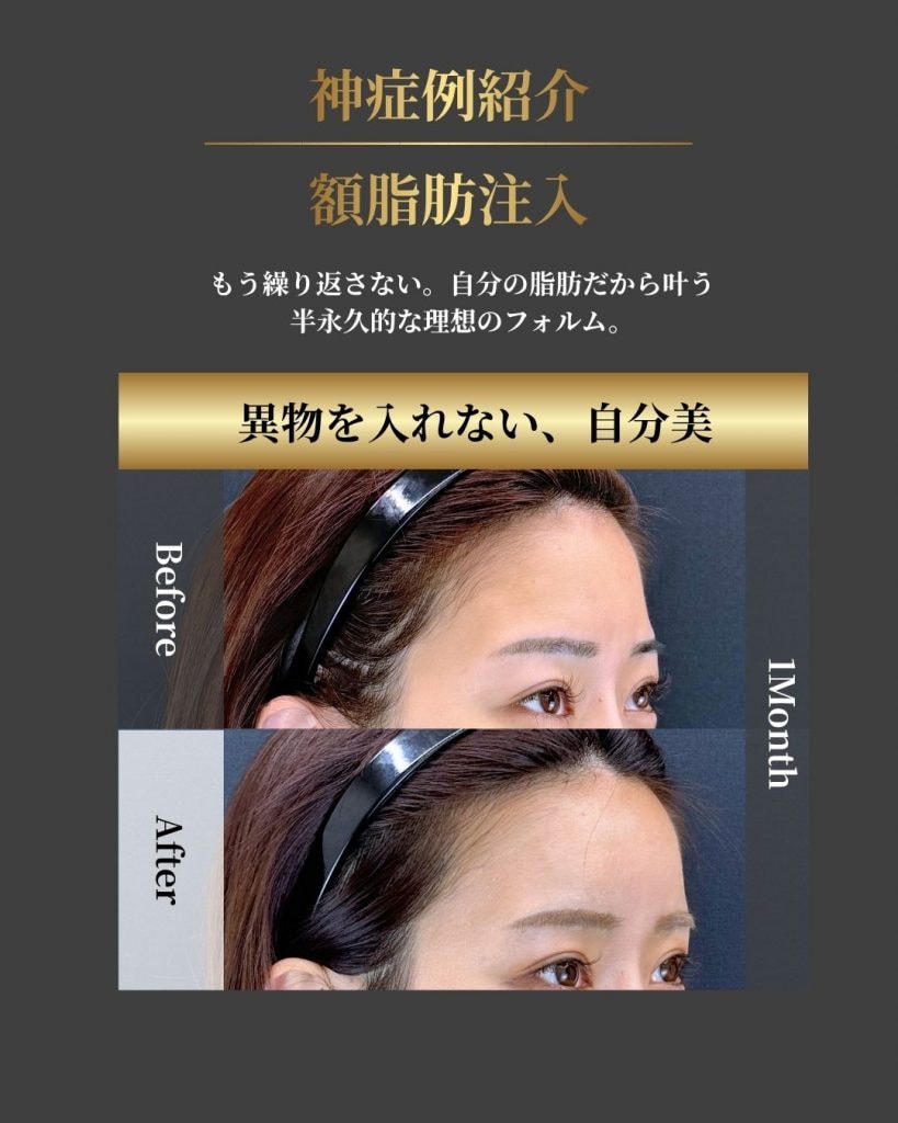 おでこの脂肪注入の神症例を紹介します。