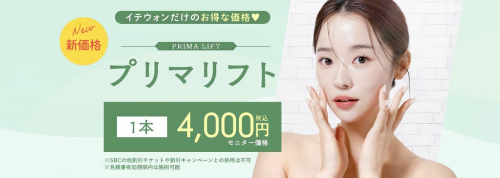 新価格として紹介したプリマリフトはイテウォン限定の1本4,000(モニター様価格)お得な価格です✨