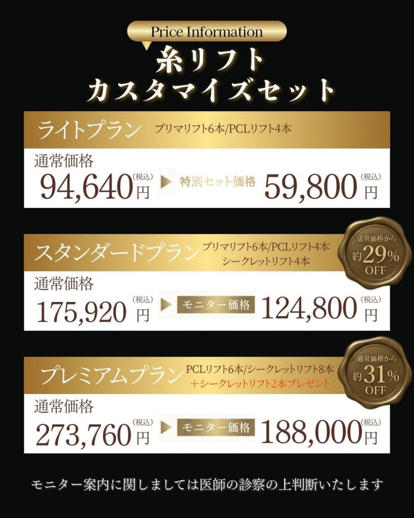 糸リフトカスタマイズセットもご案内中です。