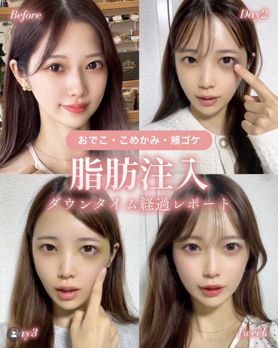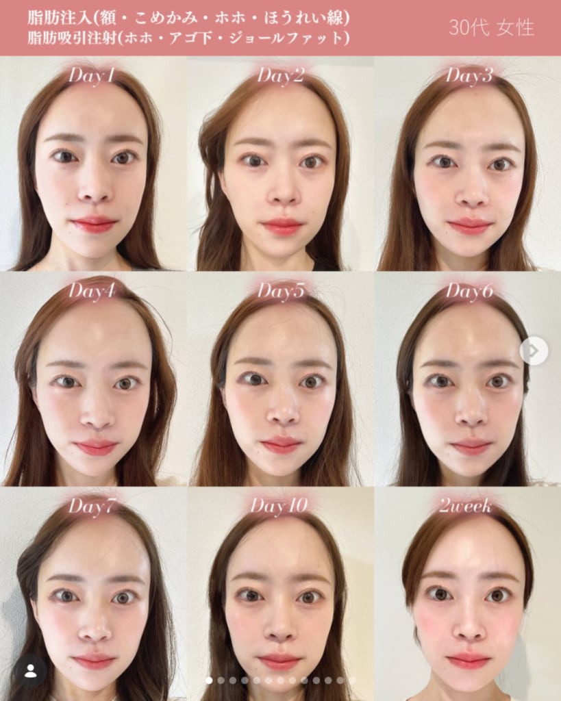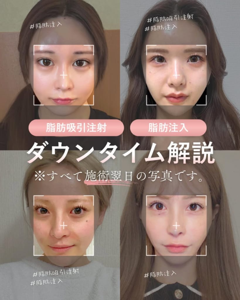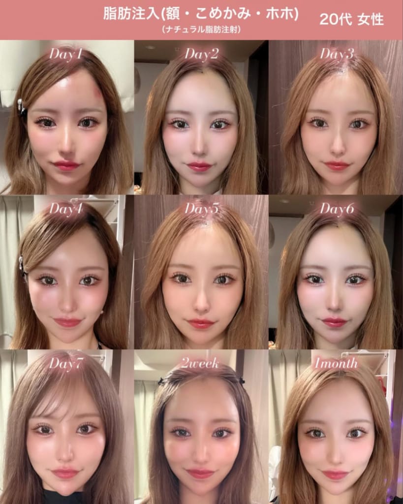 | 1ヶ月後 | 脂肪が馴染み始め、リフトアップ効果や肌のハリを実感。 |