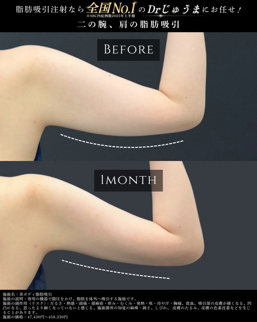 今回は、大阪・関西エリアで二の腕の脂肪吸引を検討中の方へ、「脂肪吸引注射 全国No.1」の症例数を誇る加藤重磨医師による施術について詳しく解説します。