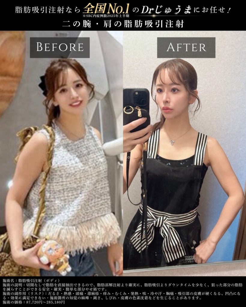 - 脂肪吸引注射 症例数全国No.1(※SBC内ドクター486名中、2025年上半期)