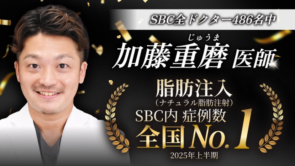 じゅうま先生は、SBC湘南美容クリニックに在籍する全ドクター486名中、脂肪注入の症例数で全国No.1🥇※という圧倒的な症例実績を誇っています。※SBC内症例数2025年上半期
