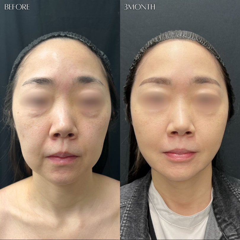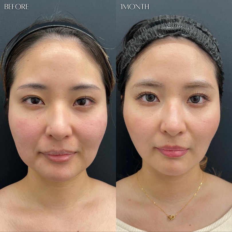 不要な脂肪による重みを局所的に取り除いた後、糸リフトでたるみを引き上げることで、頬のボリュームを損なうことなく、シャープなフェイスラインを形成しました。