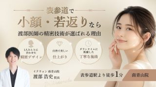 南青山院 表参道で小顔・若返りなら|渡部医師の精密技術が選ばれる理由【南青山院】 表参道駅すぐ。イテウォンビューティークリニック南青山院では、渡部医師の「元血管内治療専門医(IVR)」としての経験を活かした繊細で精密な技術を提供しています。 血管レベルの知識に基づいた施術で、ダウンタイムに配慮した治療を目指します。 丁寧で相談しやすいカウンセリングも好評です。 2026.04.26 南青山院