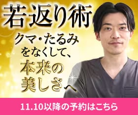京都院と統合リニューアル!11/10以降のご予約はこちらから!【見た目年齢マイナス10歳?!】クマ取りは外科医歴11年の技術力・原田俊平医師にお任せ!目元の印象を若々しく、華やかに★
