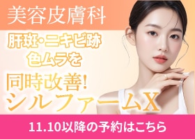 京都院と統合リニューアル!11/10以降のご予約はこちらから!肝斑・毛穴・ニキビ跡・肌色ムラ改善などあらゆる肌悩みに【シルファームX】