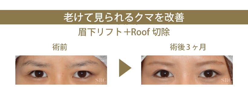 眉の下のラインぎりぎりを切開するので腫れや傷が目立ちません。