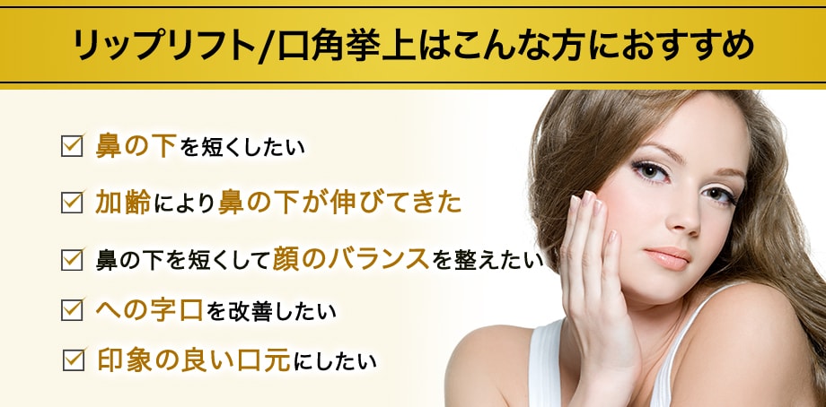 リップリフトは伸びた鼻の下の皮膚を切除し、鼻の下が間延びした印象を改善させる手術です。