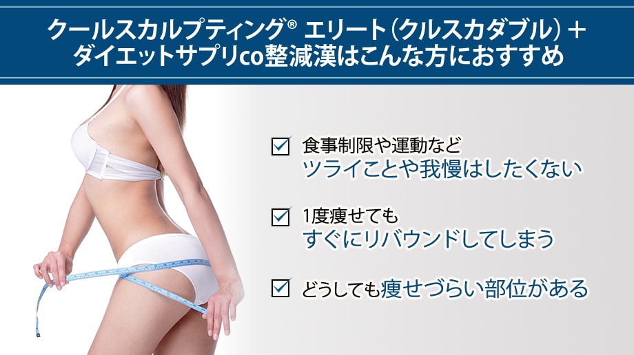 クールスカルプティング®(クルスカ)とは脂肪冷却により、効果的な部分痩せを実現したリバウンドの無い医療ダイエット法です。
