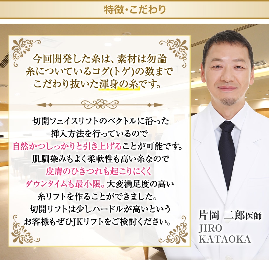 顔の解剖学を熟知した片岡二郎医師による、全く新しい糸リフト。