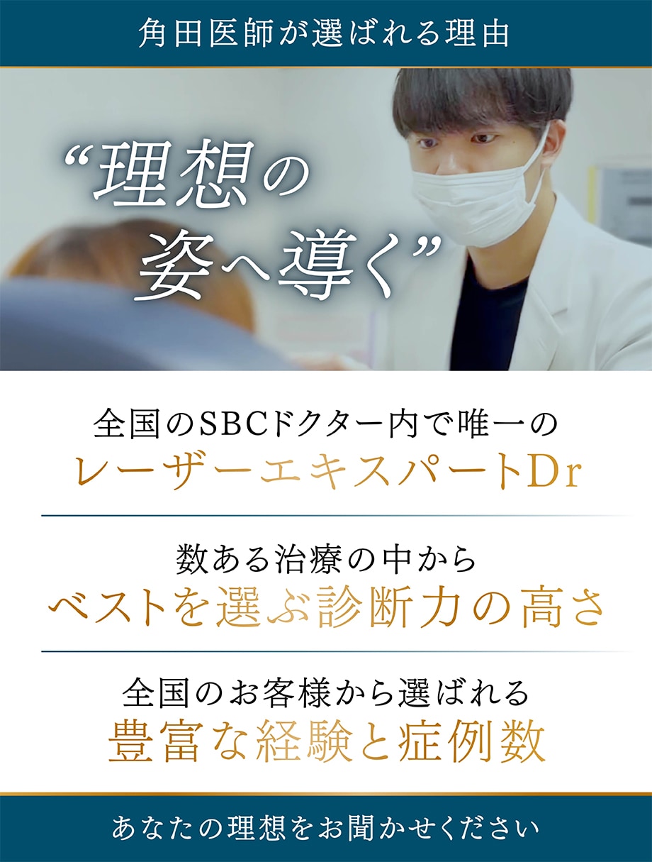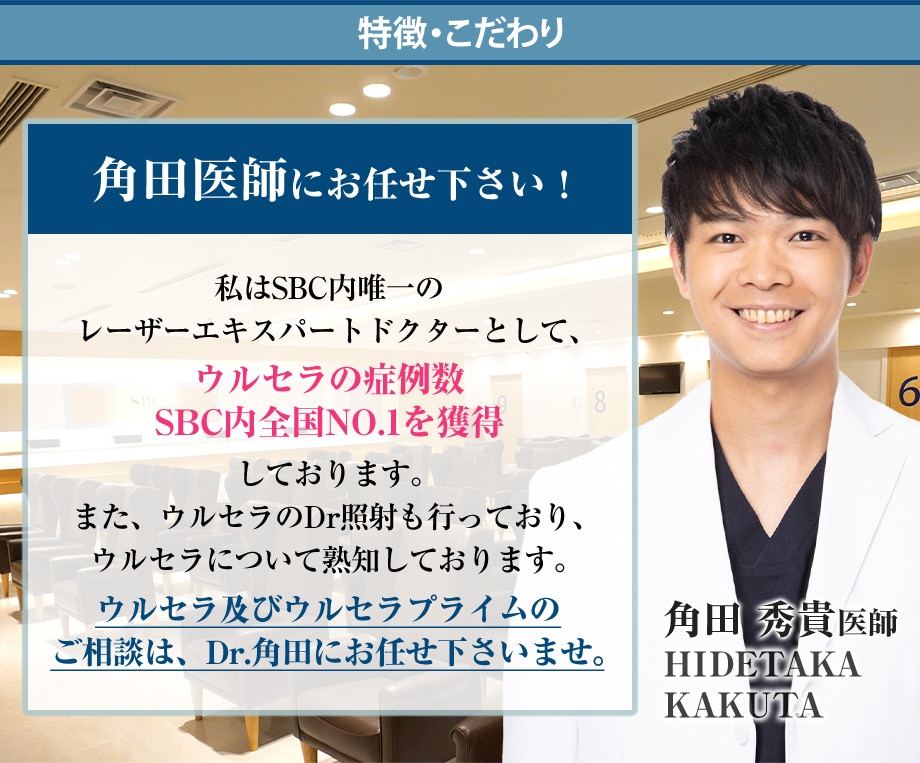 ウルセラを熟知したSBC内唯一のレーザーエキスパートDr.角田にウルセラプライムのご相談もお任せを。