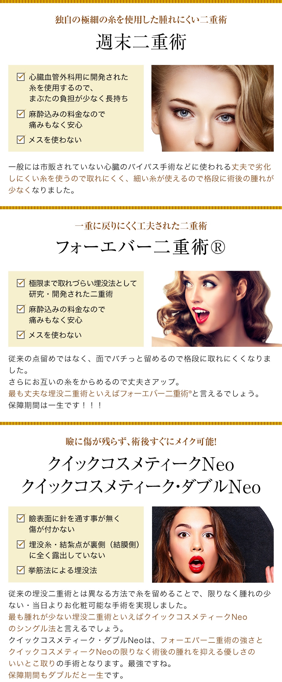 | フォーエバー二重術(R)(両目(笑気麻酔込)) | 98,000円 |
