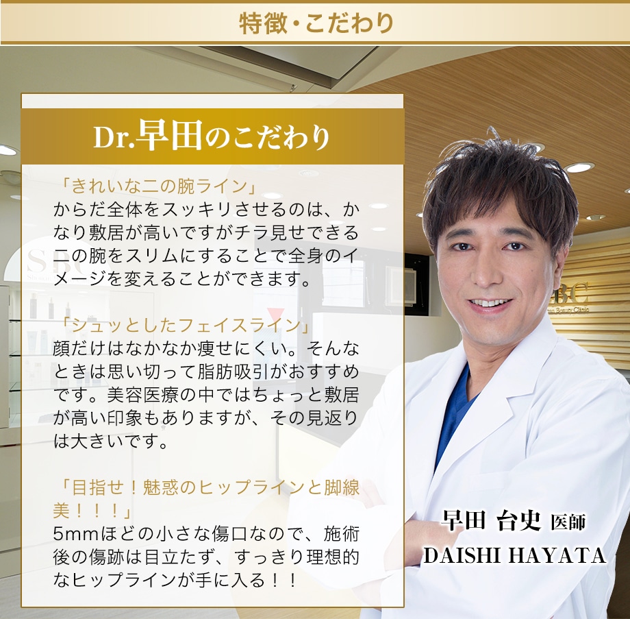 外科医歴25年以上のベテラン『メスの持てる美学家』早田 台史 (はやた だいし) が担当します。