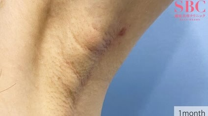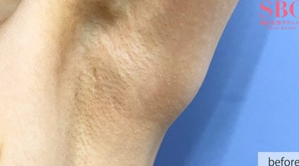 わきがを徹底的に治療する根こそぎベイザーシェービング法では、わずか1cm程度の傷からベイザーを挿入。