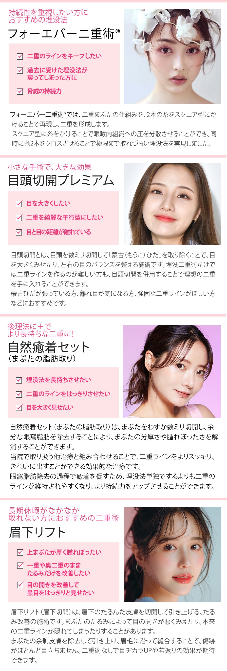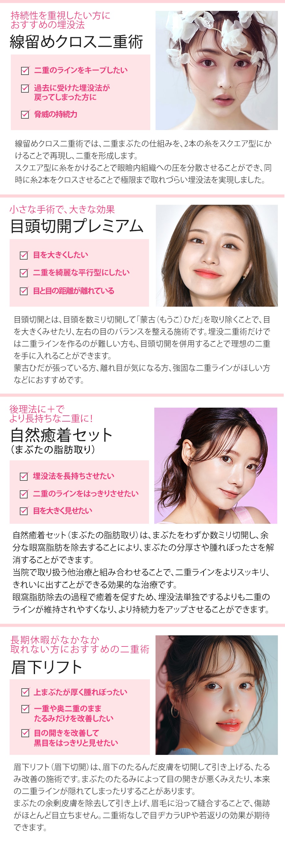 平行二重、ミックス型二重、末広二重などあなたに似合う二重、見つかります♪