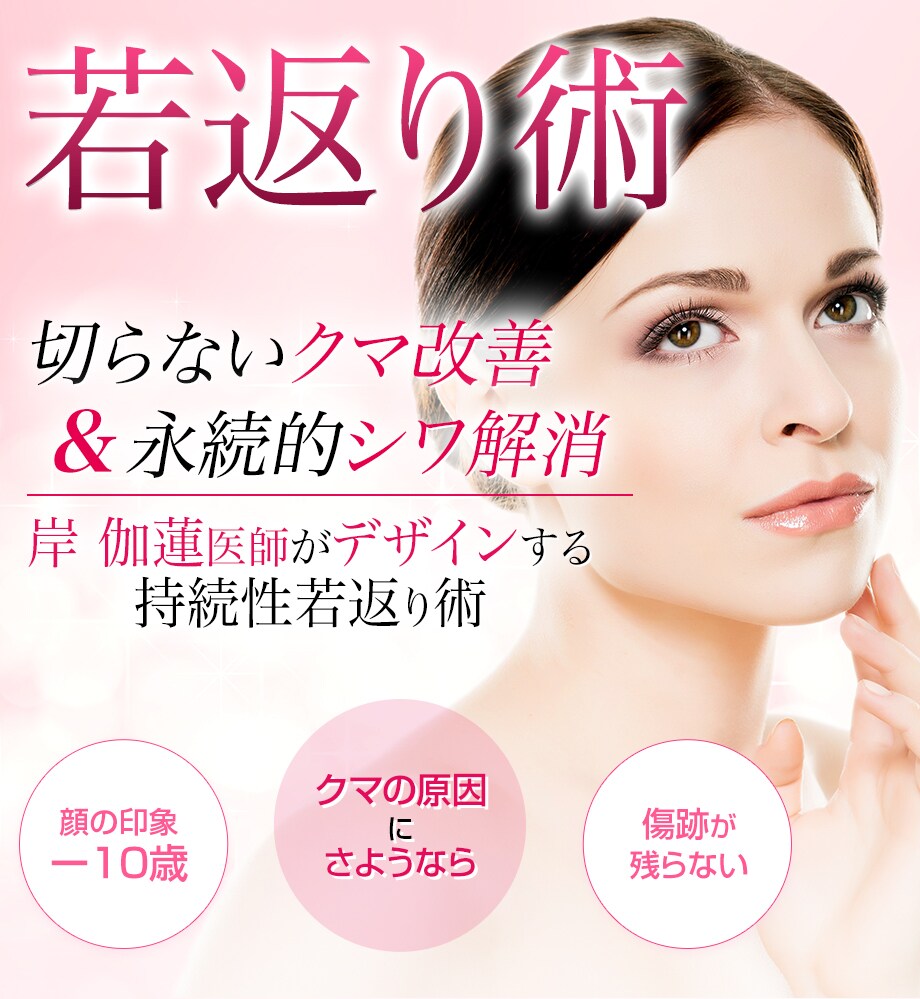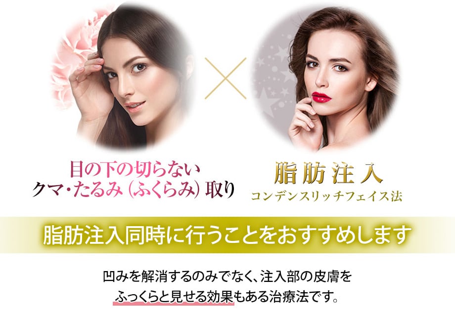 最大限の効果実感は「目の下の切らないクマ・たるみ(ふくらみ)取り+コンデンスリッチフェイス法」
