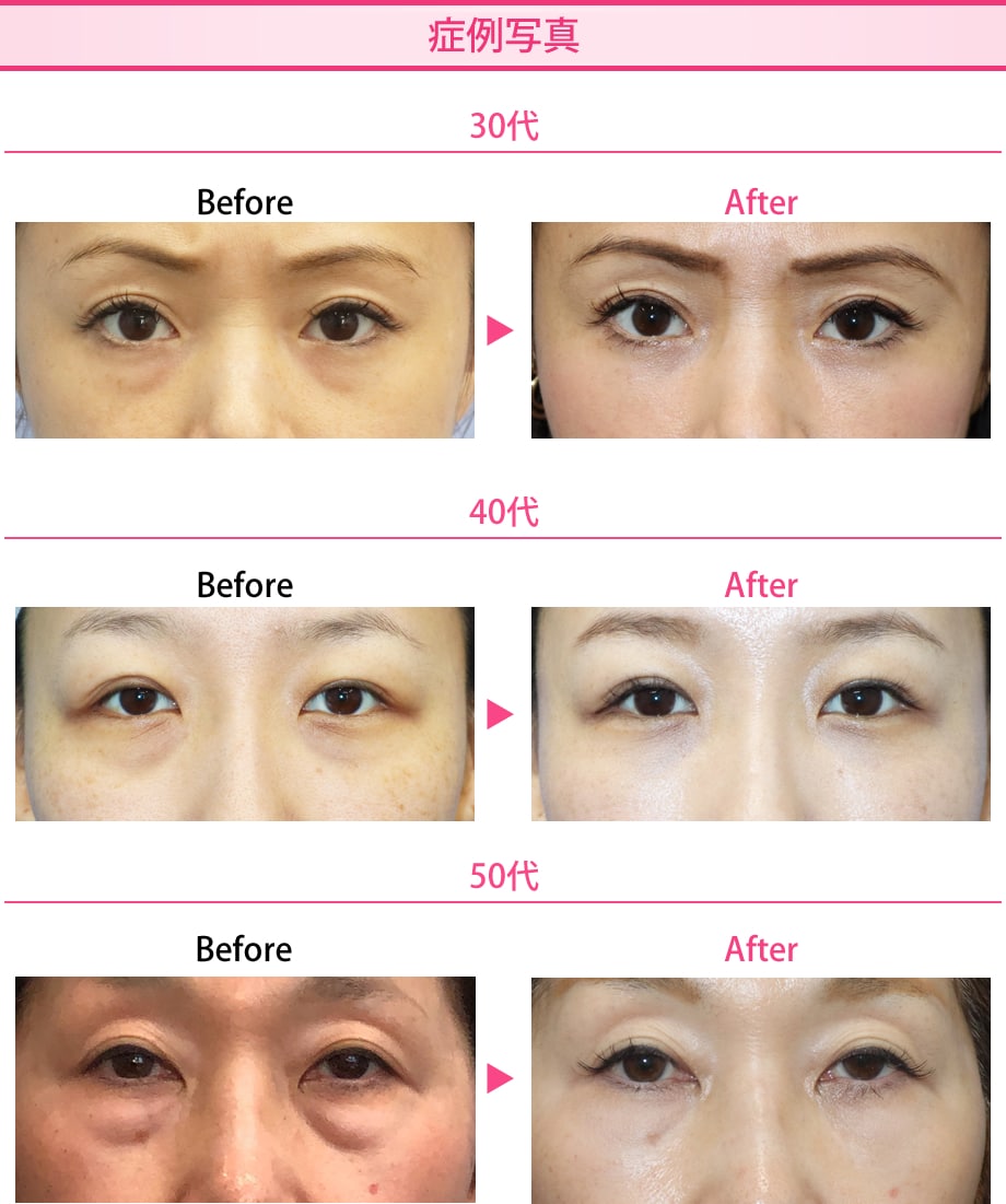 年齢の出やすい目元の余分な脂肪を取り除くことで、個人差はありますが、10歳程度の若返りも可能です。