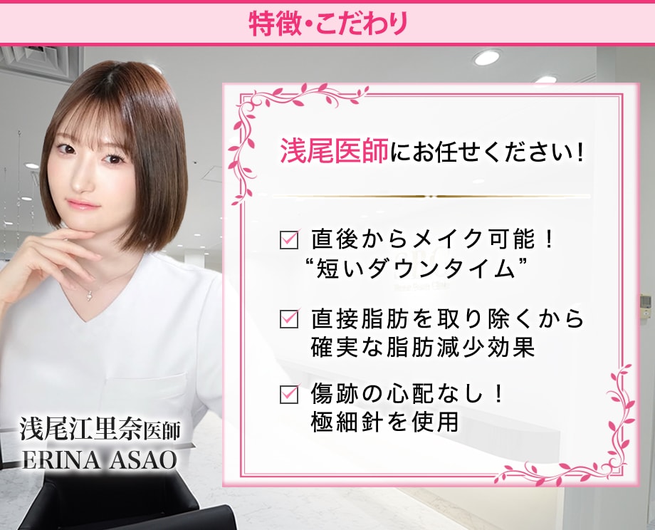少ないダウンタイムで確実な小顔効果を叶えるなら美的センス抜群の浅尾Drにお任せください。