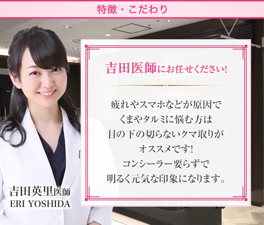 吉田医師による目の下の切らないクマ・たるみ(ふくらみ)取りのモニター様を絶賛募集中です!