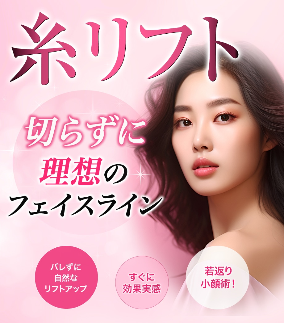 糸リフト(スレッドリフト)は、コグが付いた糸を皮下に挿入しお顔の垂れ下がった下垂脂肪を直接持ち上げ、高い位置に脂肪を再配置する施術です。