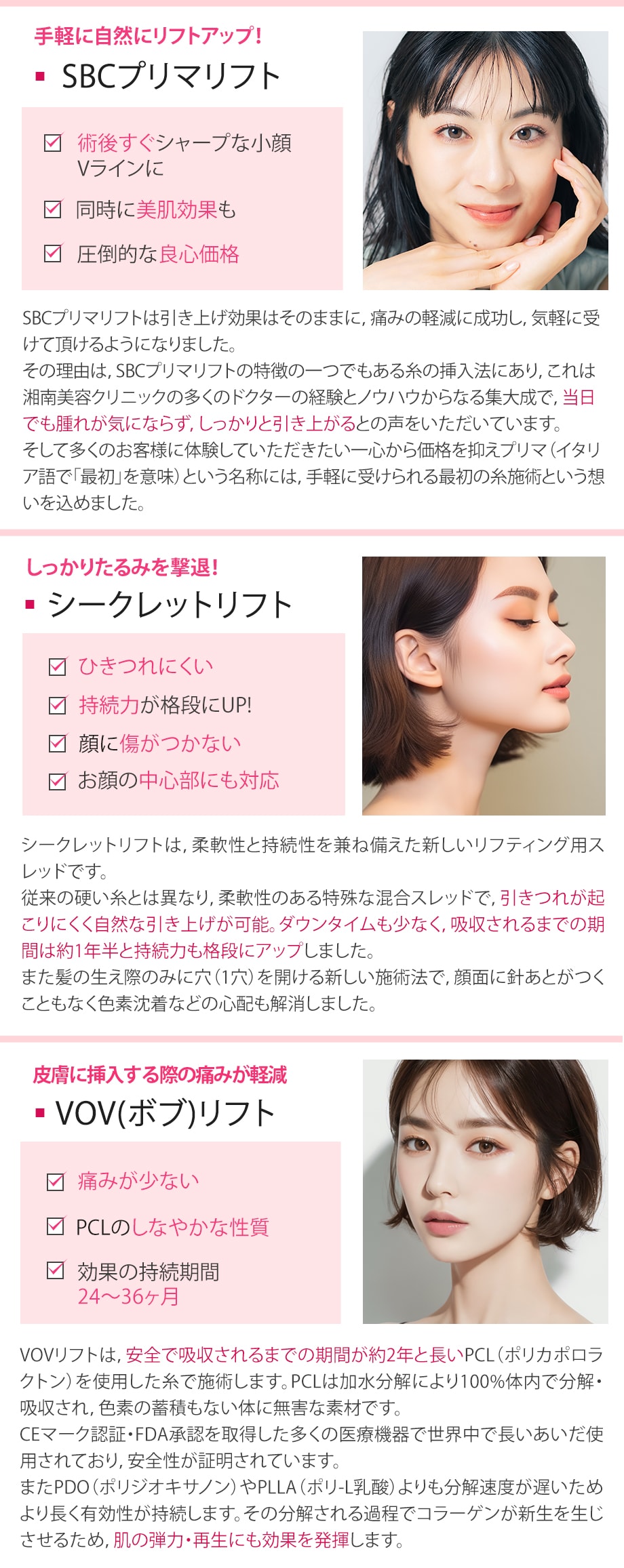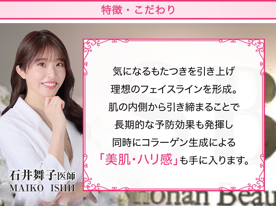 たるみやほうれい線、マリオネットラインやフェイスラインのもたつきの改善が期待できます。