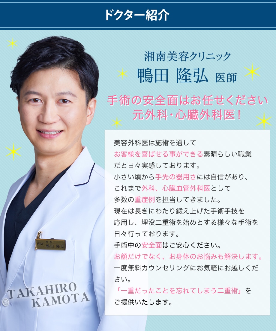 湘南美容クリニックに在籍する400名以上の医師の中から選ばれた「プレミアムドクター」14名のうちの一人!