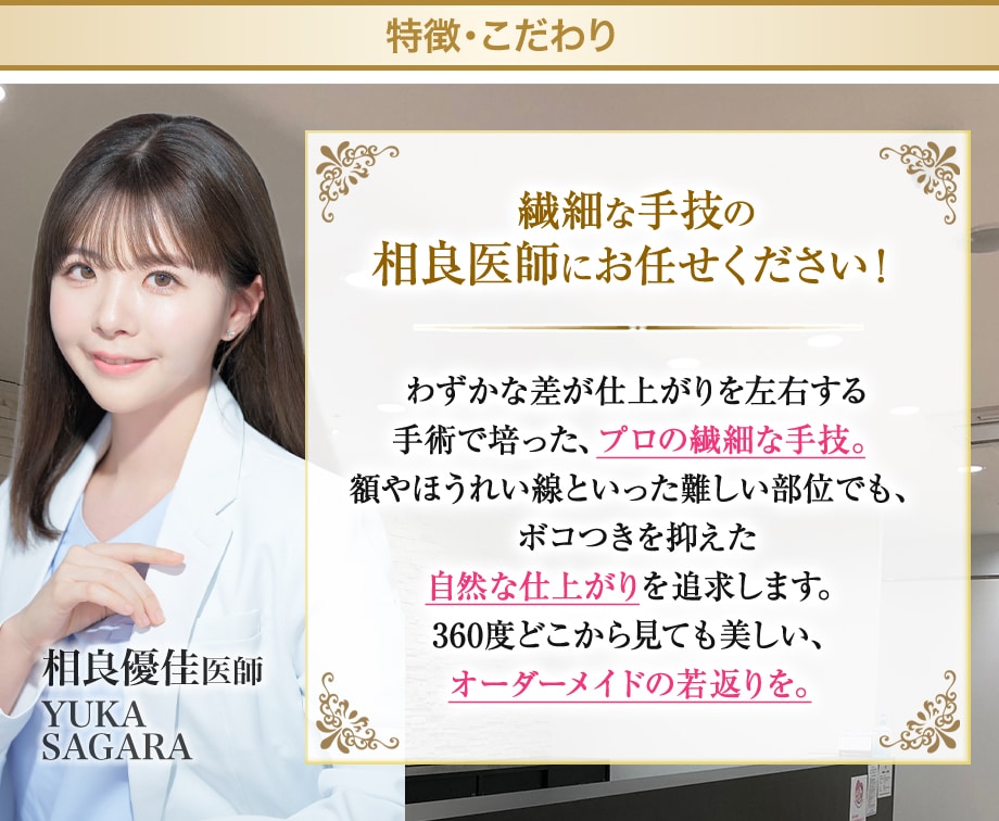 婦人科形成術などの繊細な手技が得意な相良医師が、骨格に合わせたオーダーメイドの治療を行います!