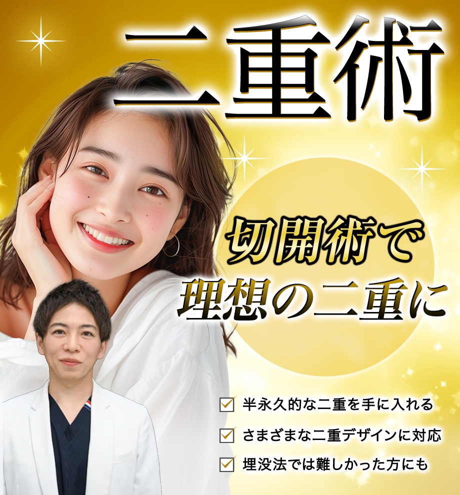 目を囲う眼輪筋や瞼前板組織などを切開することで理想的な二重を実現します。