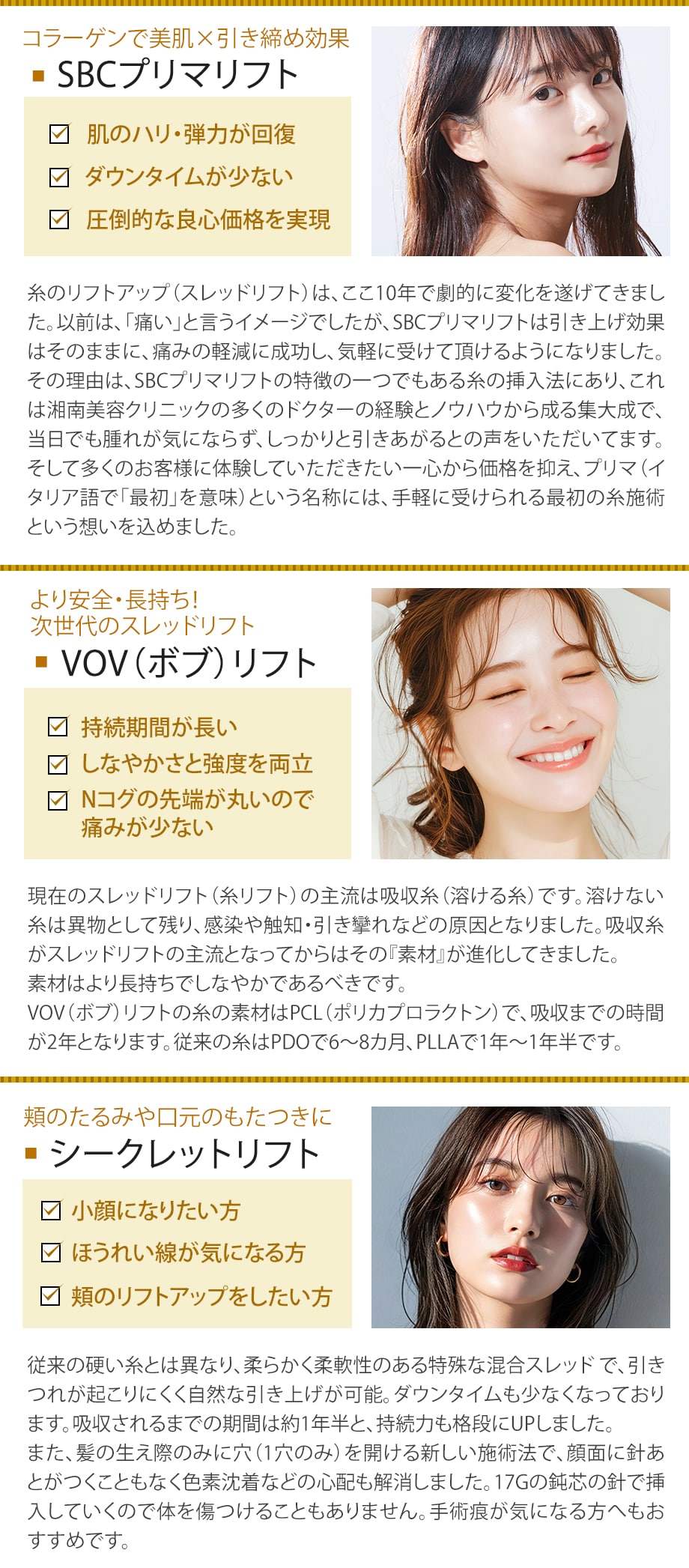 たるみやほうれい線、マリオネットラインやフェイスラインのもたつきの改善が期待できます。