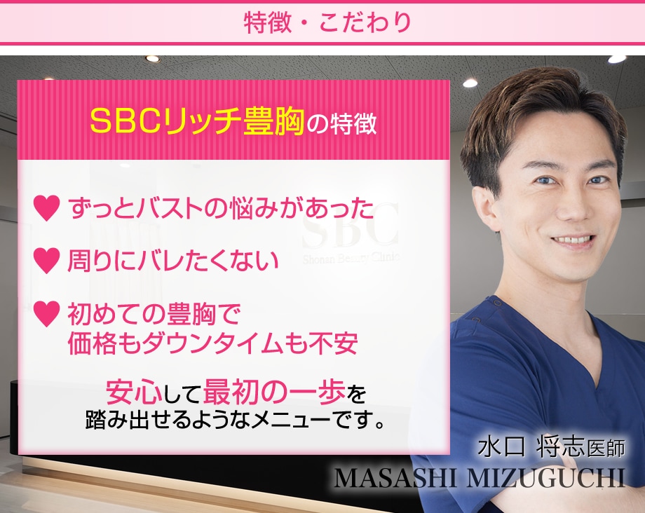 SBCリッチ豊胸は、これまでの脂肪豊胸をもっとわかりやすく、もっと選びやすくという信念の元に生まれました。