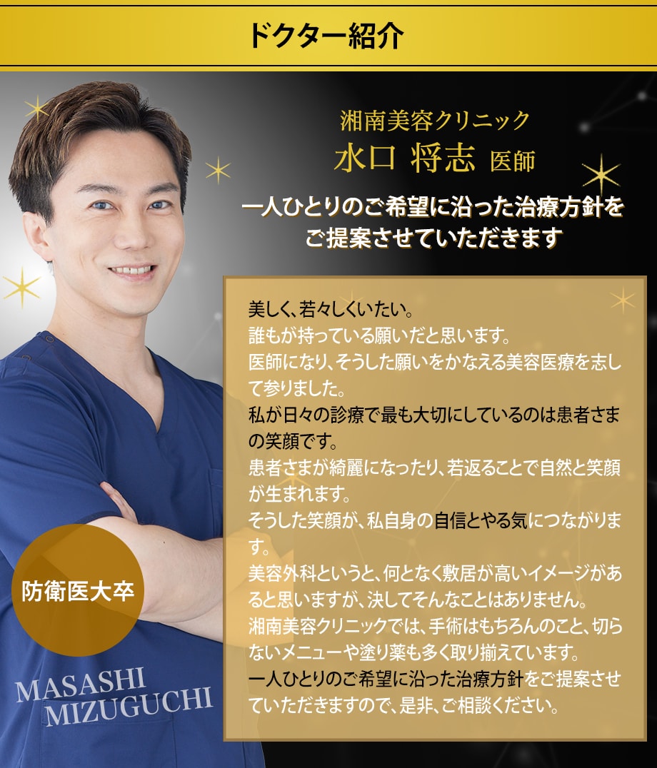 豊富な臨床経験を持つ、防衛医大卒の実力派ドクター水口医師なら、切らずにそのお悩み解消いたします!