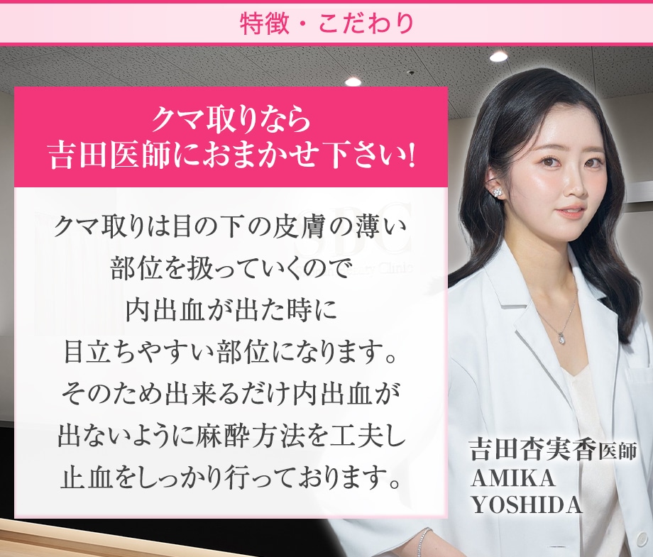 東京エリアでクマ取りをお考えの方は吉田杏実香医師までお任せください!