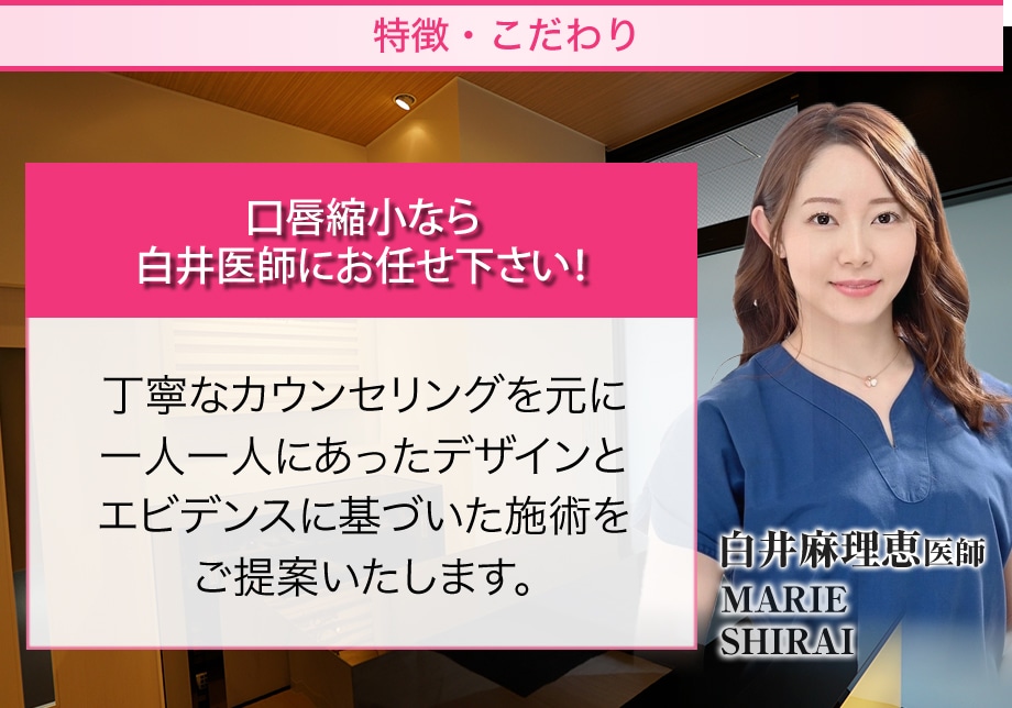白井麻理恵医師はSBCでも数少ない口唇縮小対応の医師です。