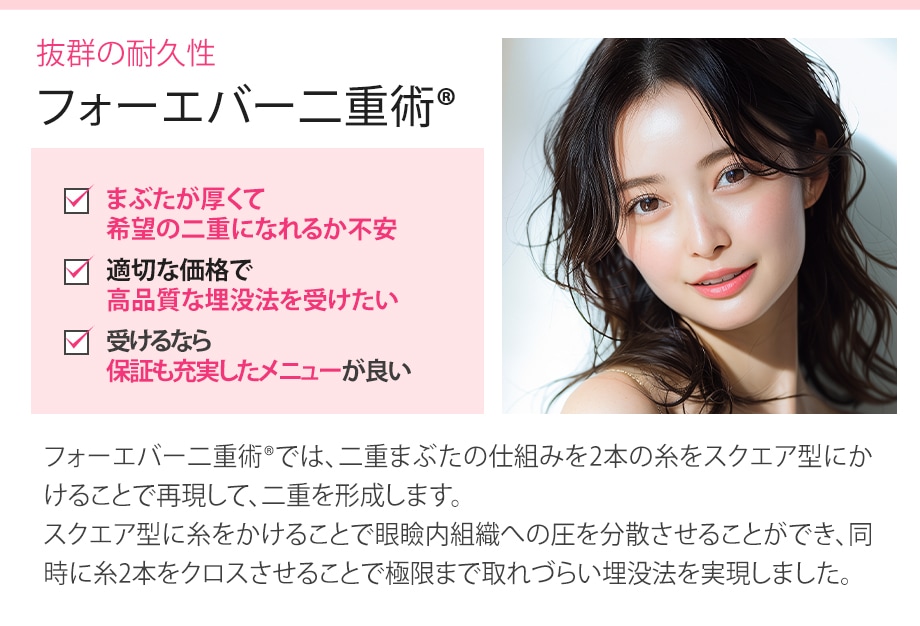 | フォーエバー二重術(R)(両目(笑気麻酔込)) | 98,000円 |