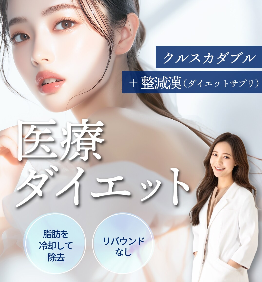 脂肪冷却により、効果的な部分痩せを実現したリバウンドの無い医療ダイエット法です。脂肪減少作用について厚労省が唯一認証した医療機器で、効果面および安全面について科学的根拠のある治療です。脂肪組織が他の組織よりも低温に弱いという性質を利用し、脂肪だけを冷却して脂肪細胞を除去します。脂肪細胞そのものの数を減らすため、治療後にリバウンドが起きにくいです。