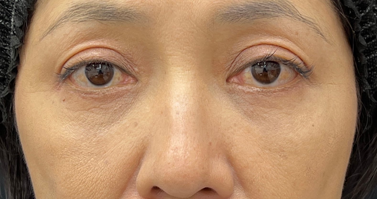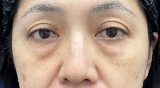 皮膚のたるみと眼窩脂肪の膨らみ、頬のボリュームロスがあったため、アイバックリムーブ法と脂肪注入(目の下ーゴルゴ)にて治療した方です。