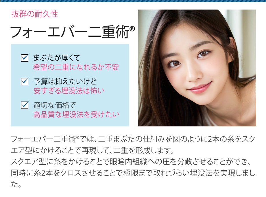| フォーエバー二重術(R)(両目(笑気麻酔込)) | 98,000円 |