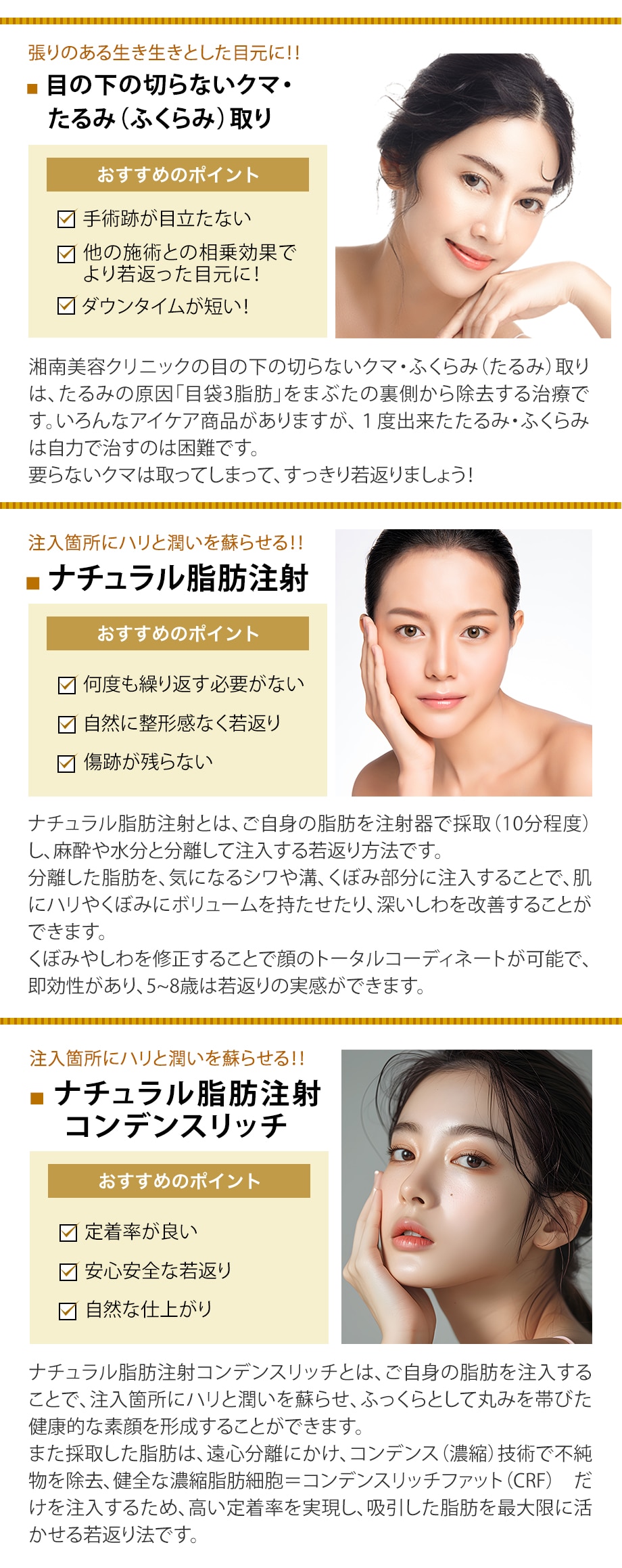 ナチュラル脂肪注射コンデンスリッチ(目の下) | 57,750円 |