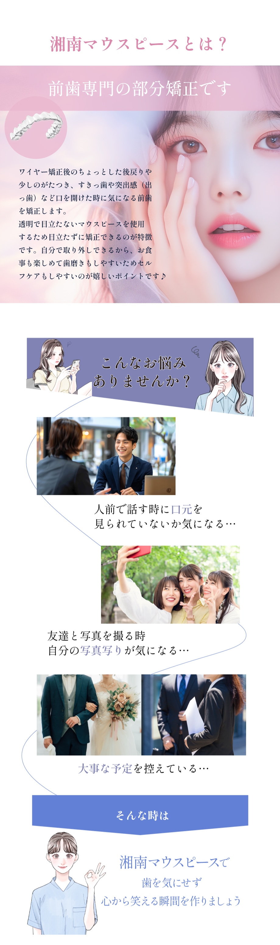 「湘南マウスピース」は、矯正後の後戻りや軽度のガタつきに対応○2?3ヶ月で終わる矯正が費用は片顎15万円から、両顎198,000円と、10万円台でコスパ良く歯並び改善できちゃいます!大阪なんば・心斎橋で歯列矯正するなら湘南歯科クリニック心斎橋院にお任せ★