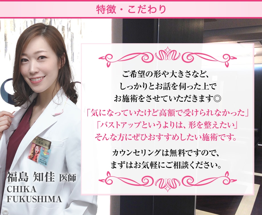 「豊胸に興味はあるけれど、まだ決断できていない。」そんな方が、安心して最初の一歩を踏み出せるようなメニューです。
