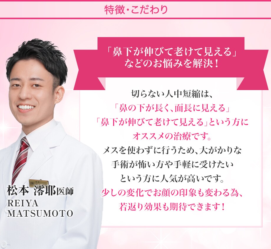 メスを入れることなく人中を短い印象にする事が出来ます。
