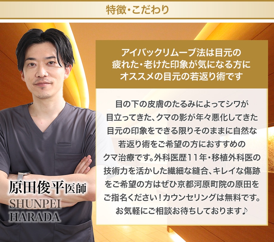 移植外科医出身の繊細な縫合力!原田俊平医師による【アイバックリムーブ法】で目元の影グマの根本改善!