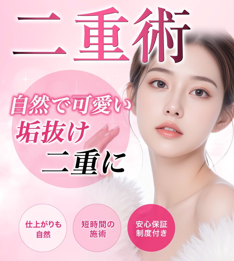 上まぶたの“瞼板”と呼ばれる軟骨ほどの硬さの板にトライアングル形式で、極細の医療用糸を留めるので、従来の埋没法に比べ術後の腫れが抑えられ、持ちも良いのが特徴です。また糸針が細いため、傷跡や糸の結び目が小さく目立ちにくく、自然な二重形成が可能です。