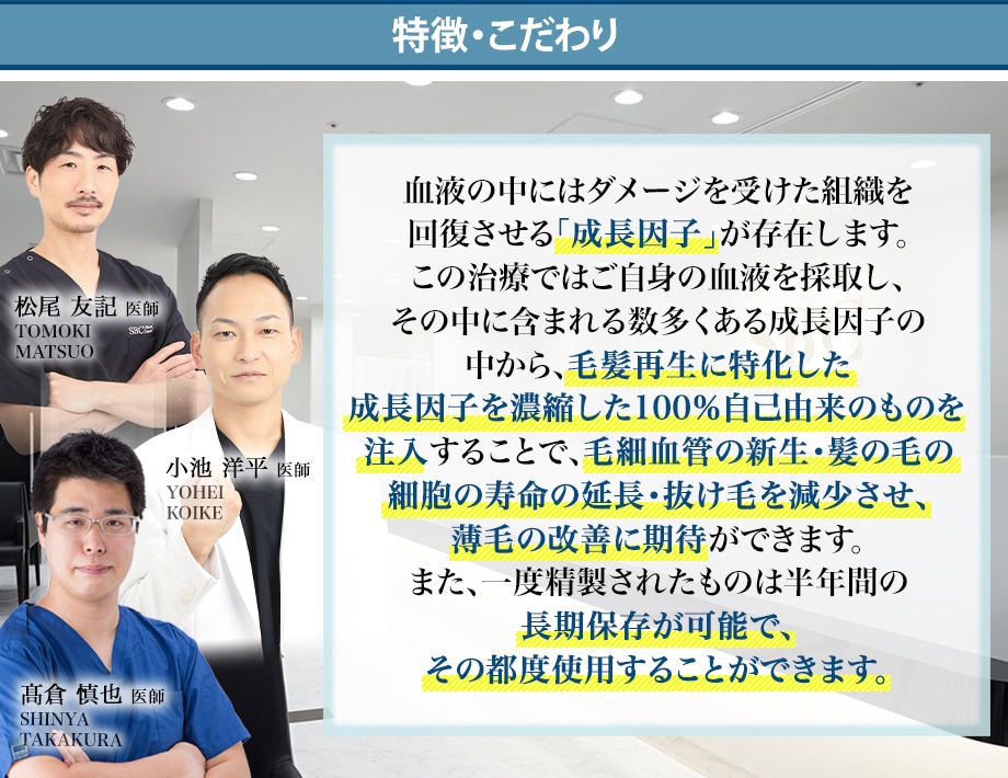 自己由来の「成長因子」を使用する完全オーダーメイドの薄毛治療だから