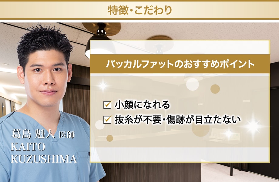 深い層にある脂肪(バッカルファット)は、お口の中に約5mmの小さな入り口をつけることで皮下出血や青タンを極力生じさせることなく、最小限のダメージで量を減らすことが可能です。