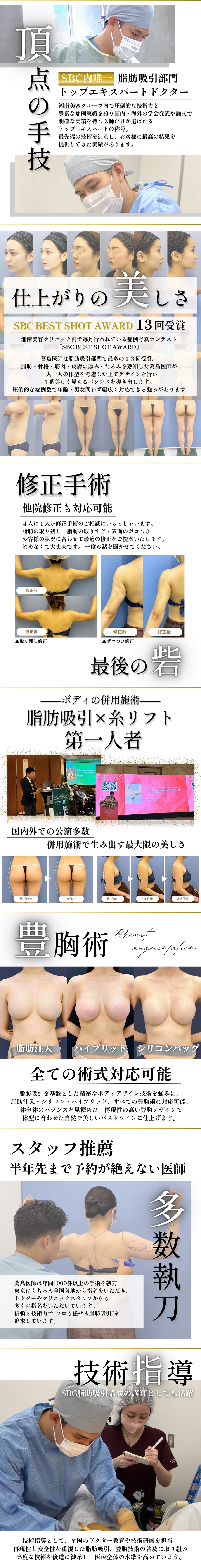葛島魁人医師の脂肪吸引年間執刀数は1000件以上!豊富な経験でお客様の希望に臨機応変に応えられます!