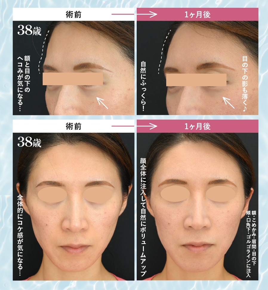 注入後3ヶ月~半年程かけて効果が現れるため自然な若返りが可能です。